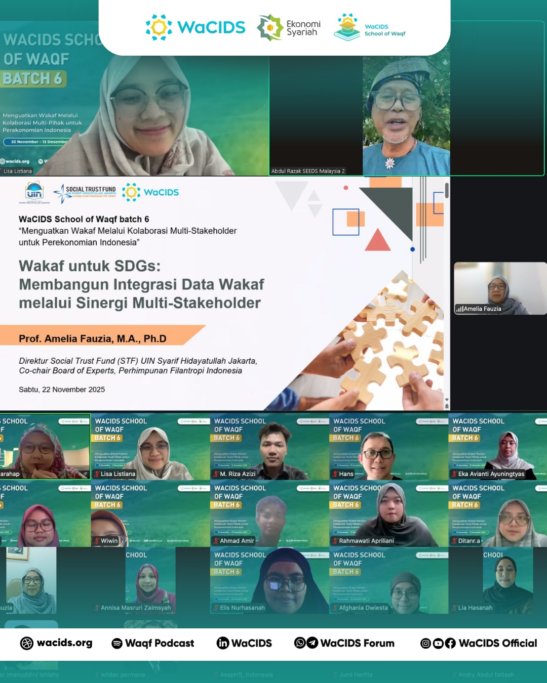 Kutip artikel ini: Andrian, F.K. & Apriliani R. (6 Desember 2025). Day 1 School of Waqf Batch 6: Integrasi Data dan Informasi Antar Lembaga Filantropi: https://wacids.org/detailberita/92/2025-12-06/Day-1-School-of-Waqf-Batch-6%3A-Integrasi-Data-dan-Informasi-Antar-Lembaga-Filantropi